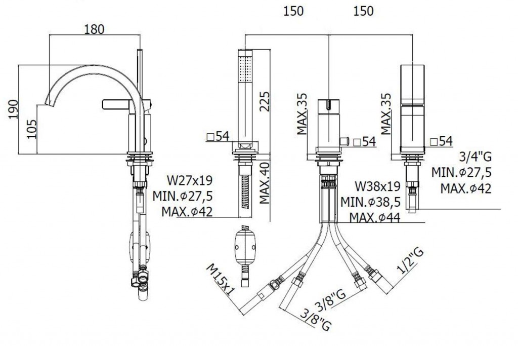 - pre inštaláciu na okraj vane