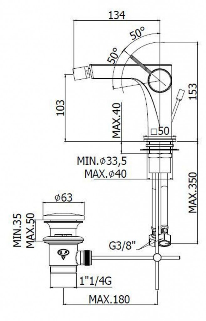Bidetová stojánková páková batéria s výpusťou