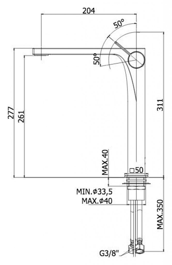 - dĺžka výtoku 204 mm