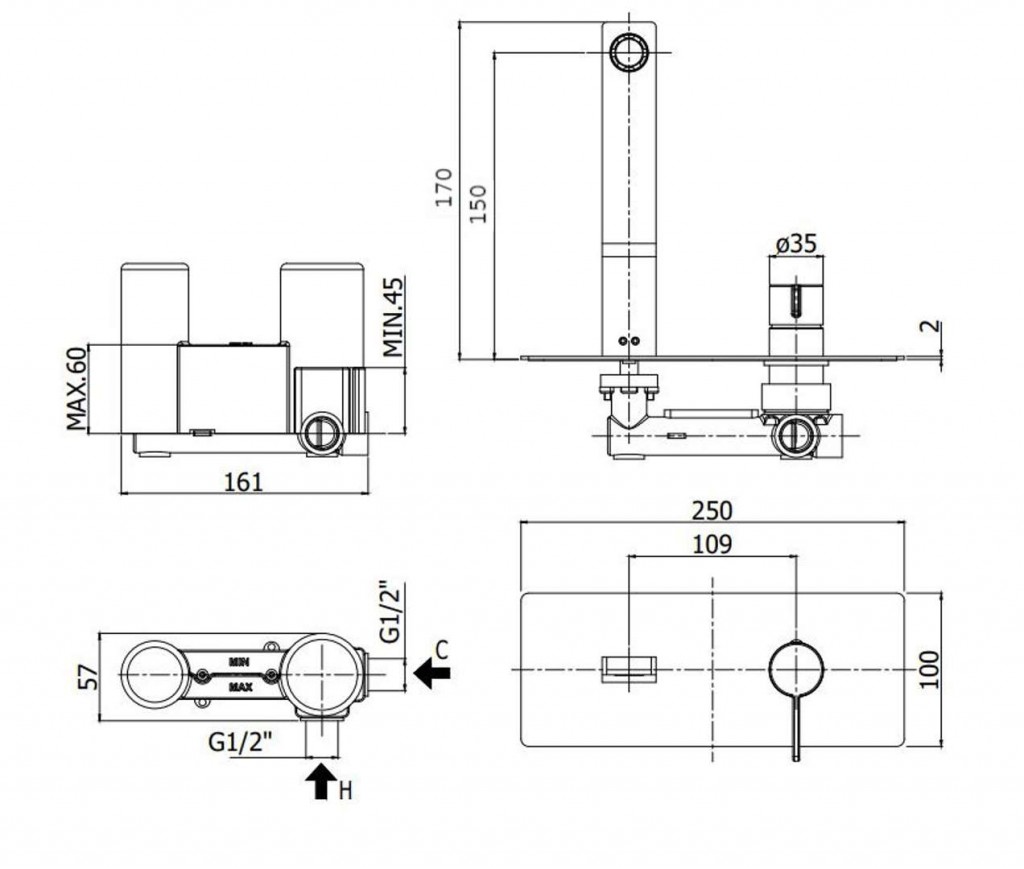 - inštalácia na montážne podomietkové teleso, ktoré je súčasťou batérie