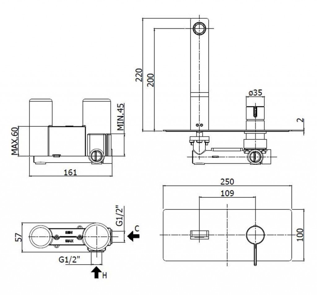 - dĺžka výtoku 200 mm