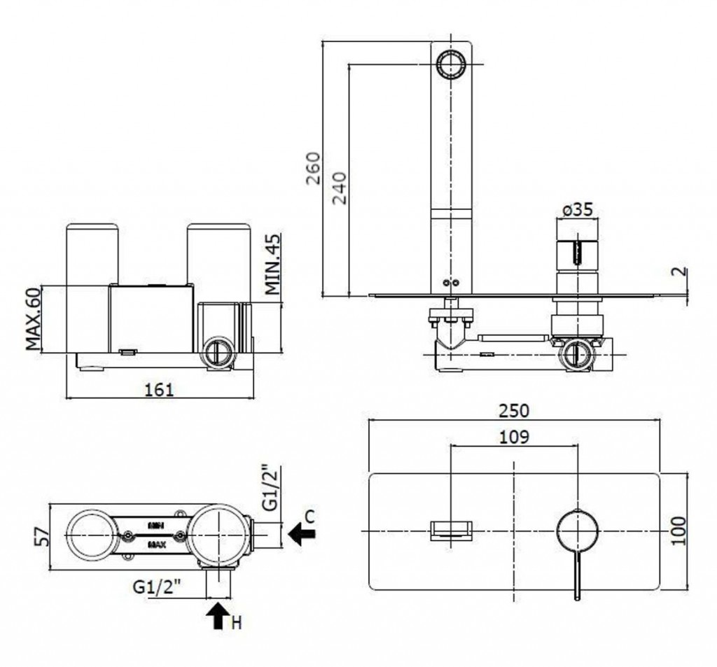 - dĺžka výtoku 240 mm