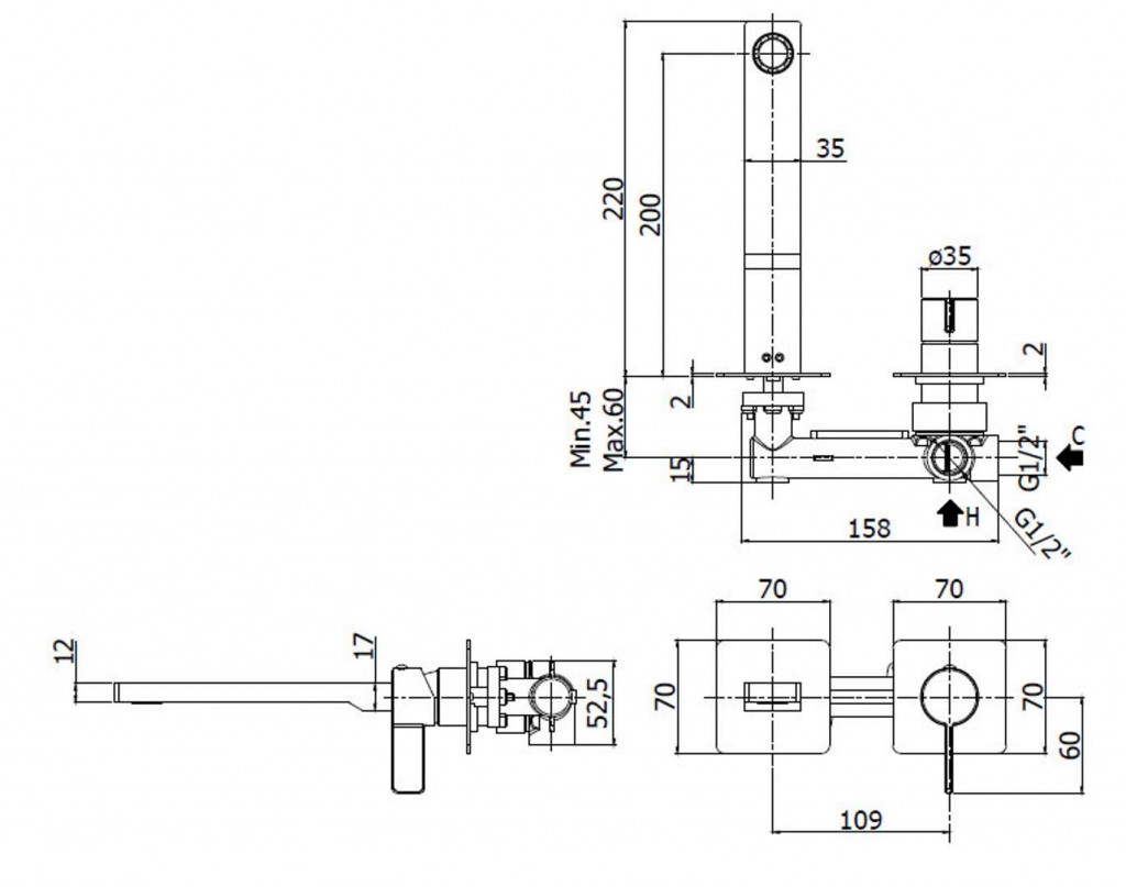 Umývadlová 2 prvková nástenná páková batéria pod omietku s telesom