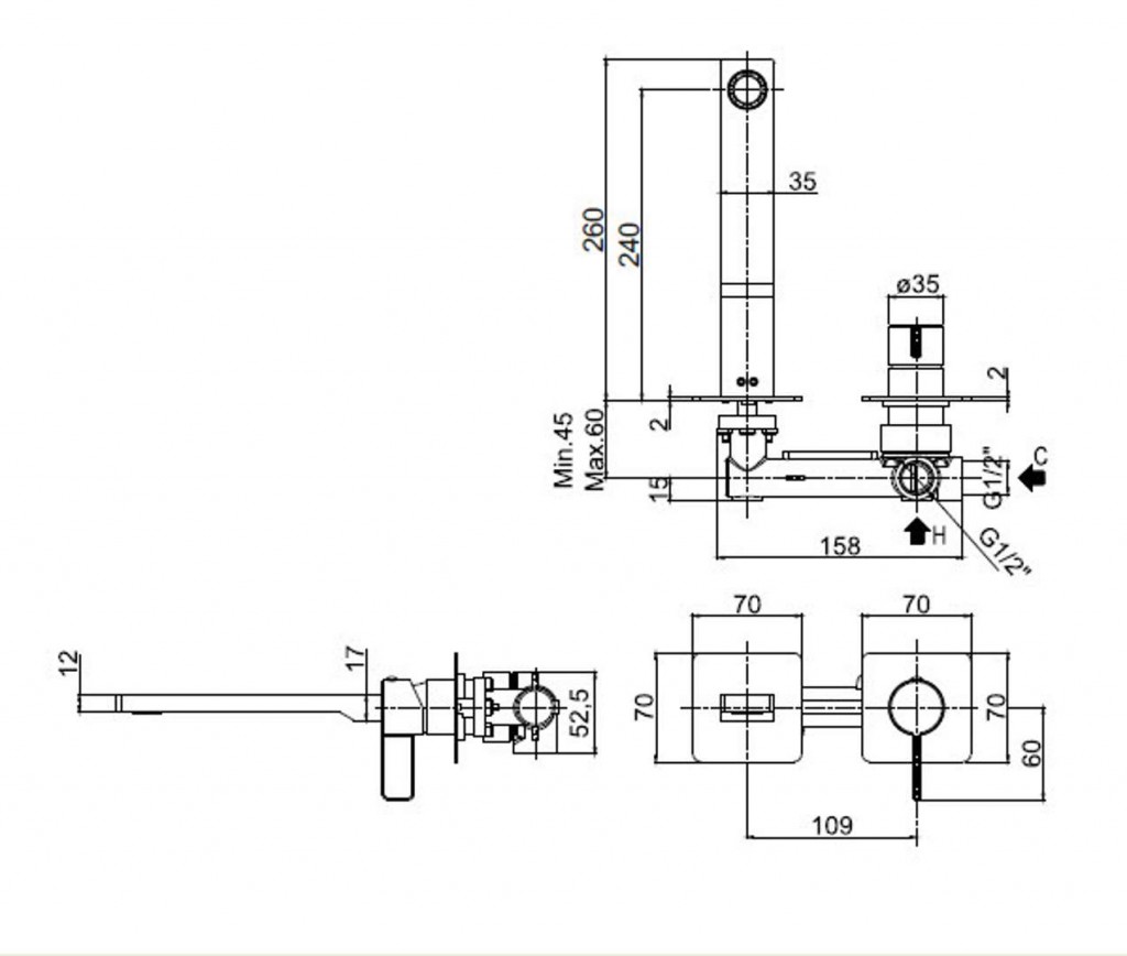 Umývadlová 2 prvková nástenná páková batéria pod omietku s telesom