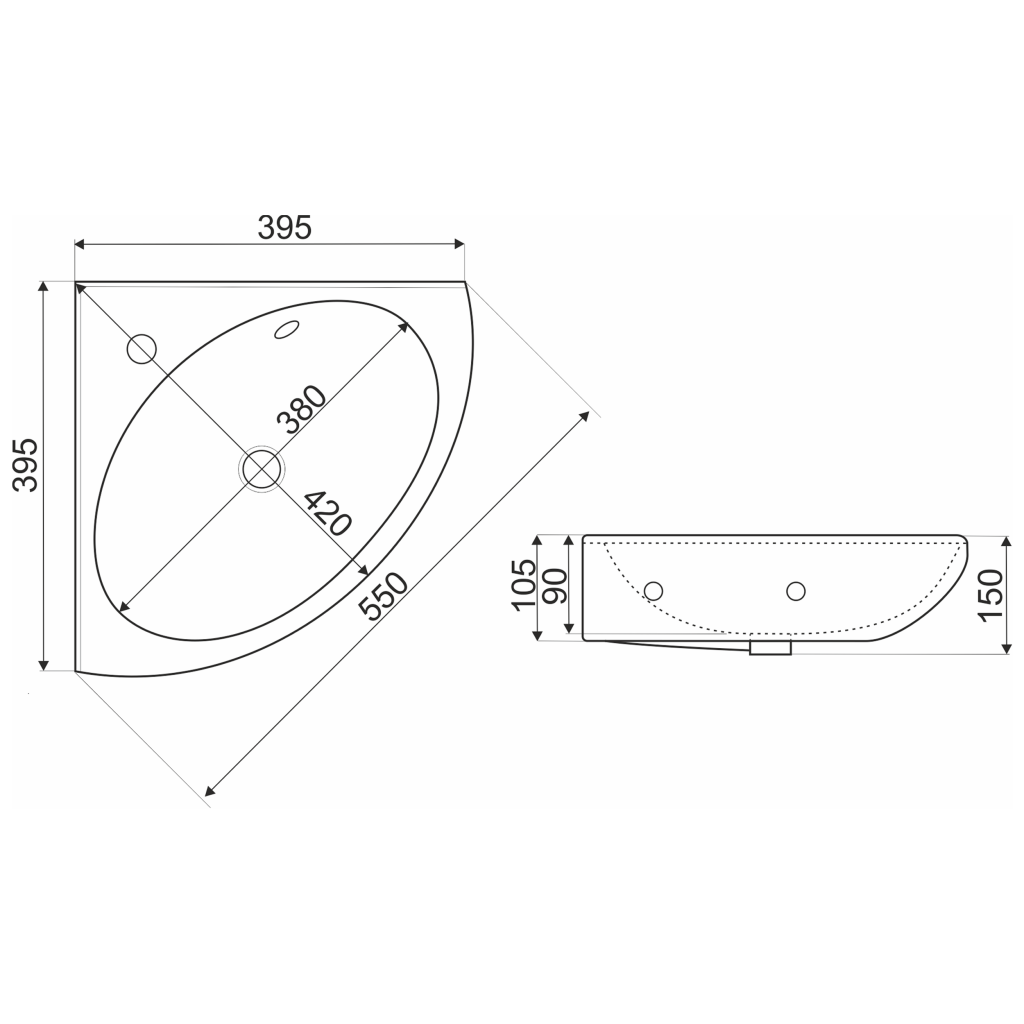 Rohové závesné umývadlo ELF NAR zo sanitárnej keramiky