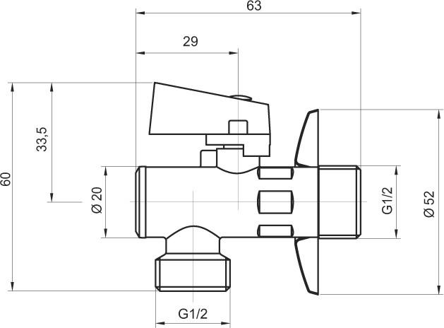 Rohový ventil s filtrom, krytkou a kovovou pákou 1/2x1/2