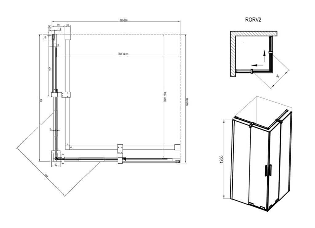 - inštalačné rozmery (šxv): 880-900 x 880-900 x 1950 mm