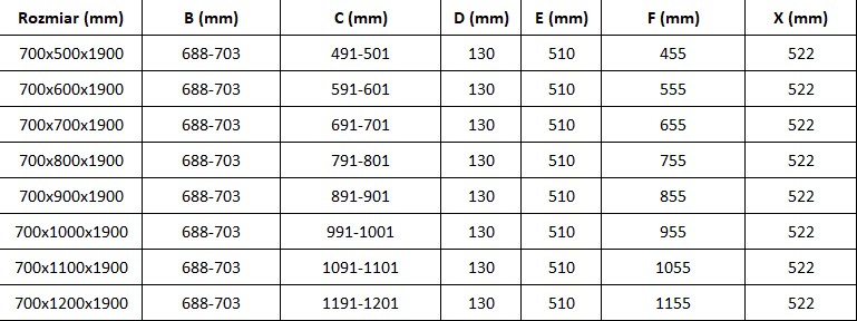 Inštalačný rozmer krídlových dverí do sprchového kúta je 688-703 mm, pevné pole 130 mm . Vstup do sprchy budete mať 51 cm . Dvere je možné otvárať iba von.