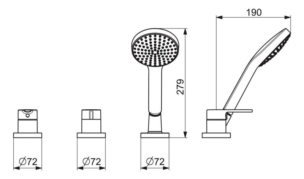 - montáž: na základné teleso pre vaňové batérie s 3-otvorovú inštaláciou