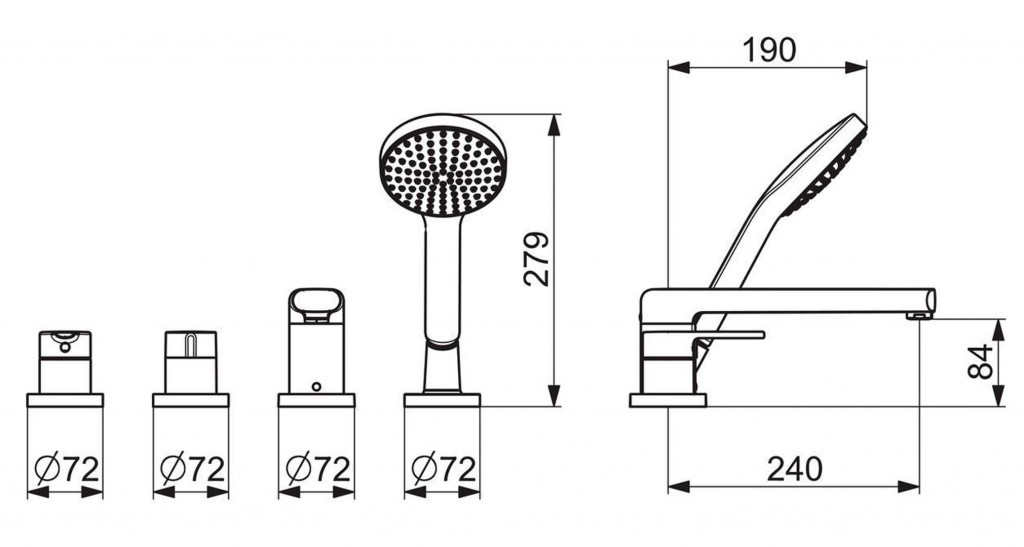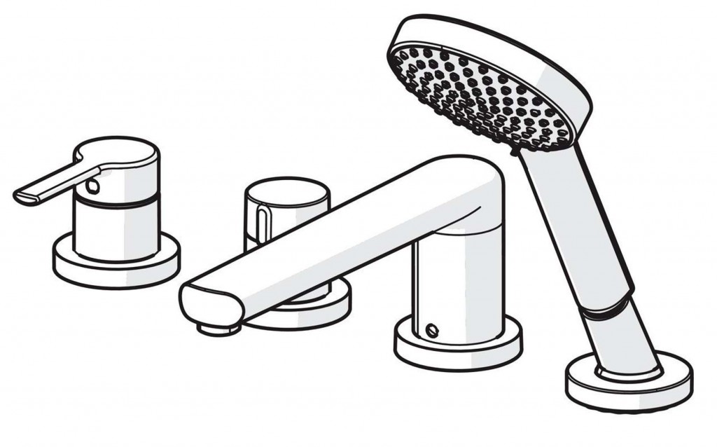 Štvorotvorová batérie pre inštaláciu na okraj vane