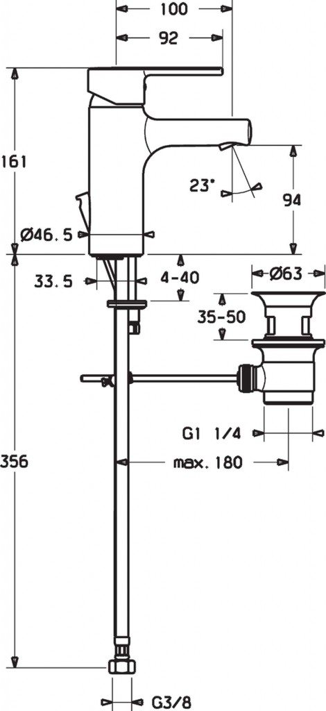 - pripojenie tlakovej hadice G 3/8