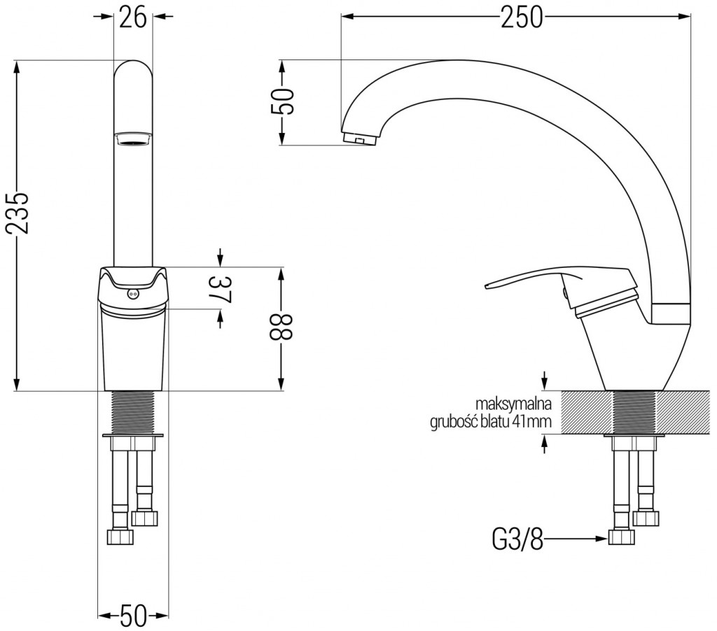 Pákovú drezovú batériu umiestnite podľa ľubovôle na drez alebo pracovnú dosku. V balení nájdete všetko, čo budete potrebovať na pripojenie: batériu, pripojovacie hadičky, montážne skrutky a tesnenia.