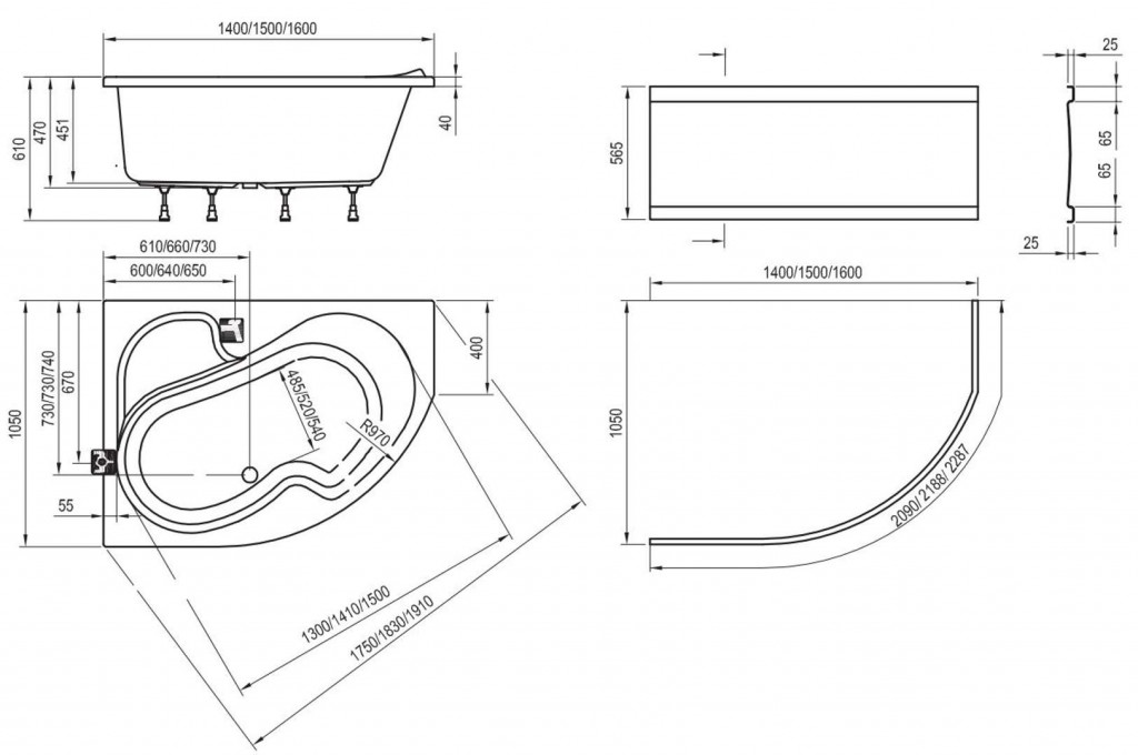 - čelný panel, inštalačné príslušenstvo, vaňovú odtokovú a prepadovú súpravu treba objednať samostatne