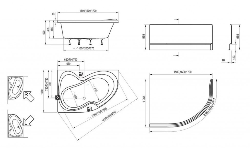 Asymetrická vaňa Rosa II, 150 R