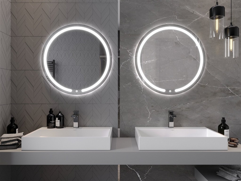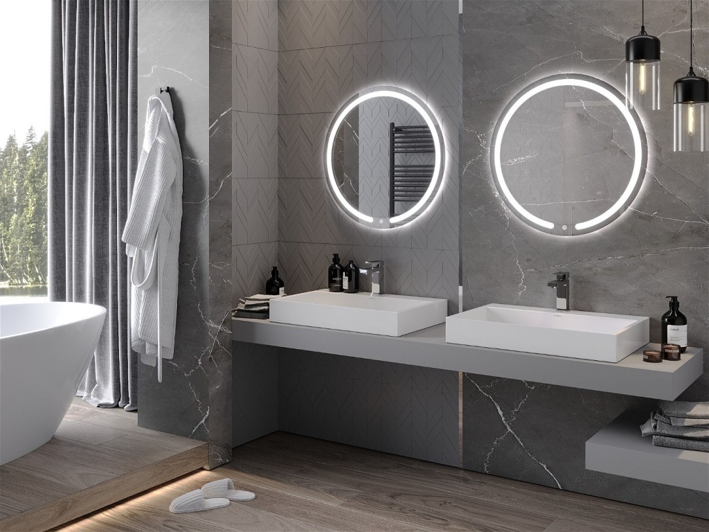 Moderné a jednoduché okrúhle zrkadlo kolekcie ROSE je vybavené LED podsvietením, ktoré sa ľahko ovláda pomocou dotykového tlačidla priamo na ploche zrkadla . Zrkadlo je vybavené vyhrievacou podložkou ANTI-CAR , ktorá eliminuje zahmlenie skla.