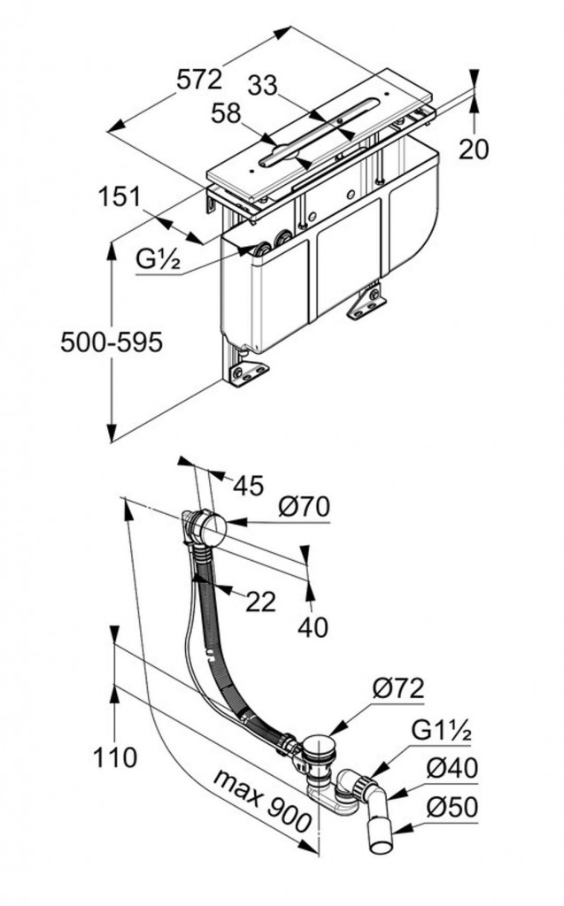 - napúšťací, vypúšťacie a odtoková súprava G1 1/2