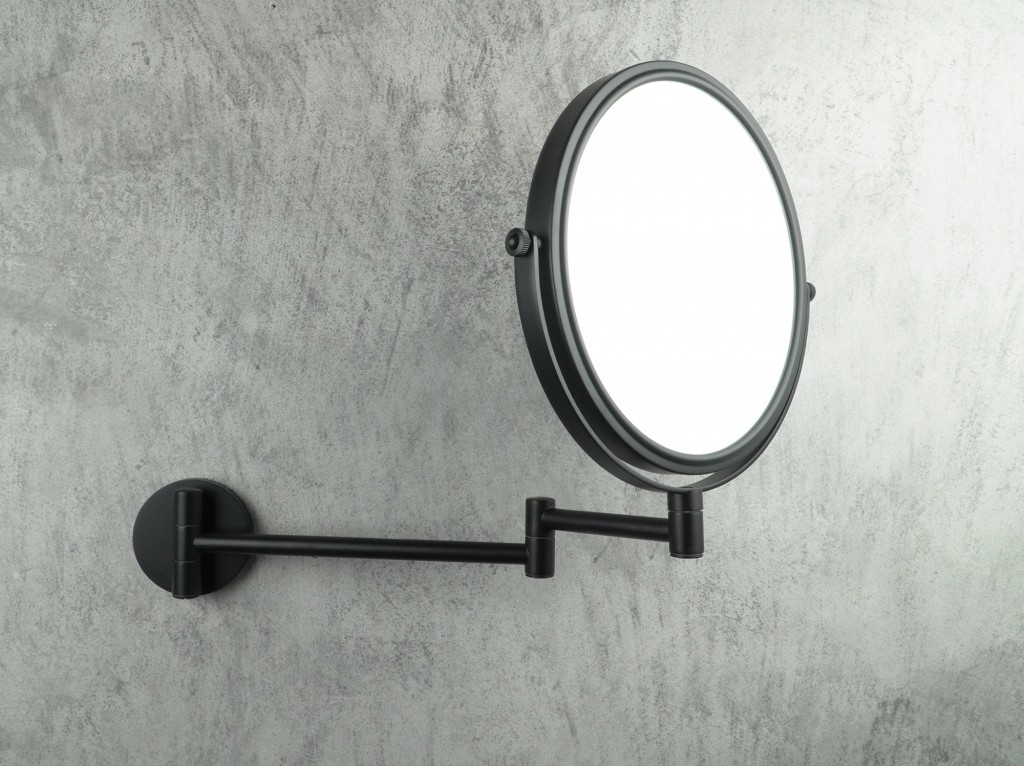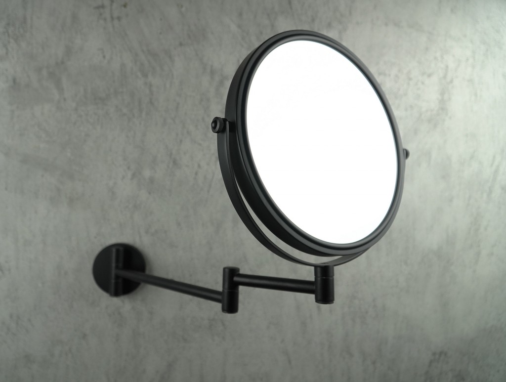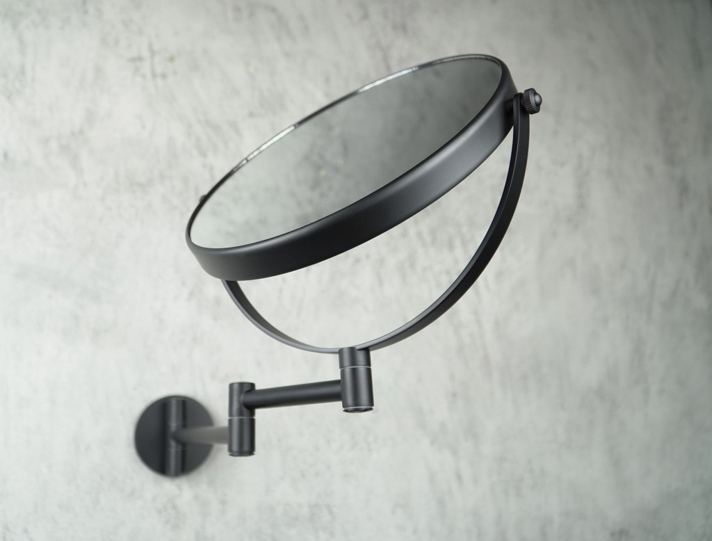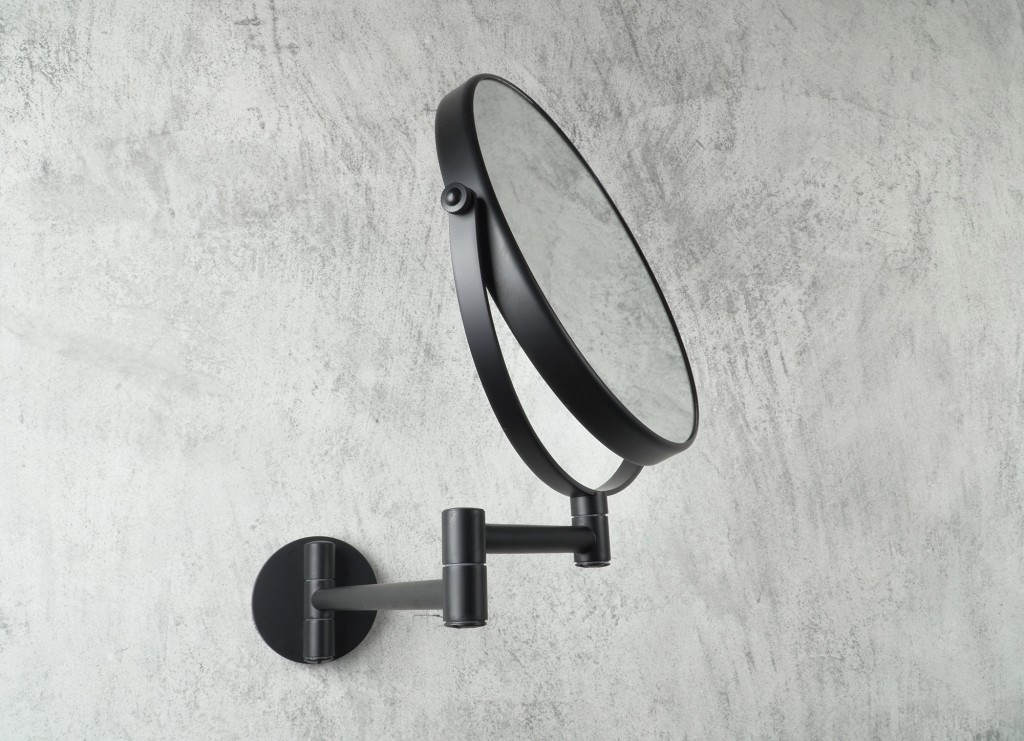 Kozmetické zrkadlo pochádza zo série ROUND a je určené na montáž na stenu. Dlhé, pohyblivé rameno umožňuje ľubovoľné polohovanie zrkadla. Zrkadlo so skrytým upevnením je obojstranné, pričom jedna strana zväčšuje odraz až 3x.