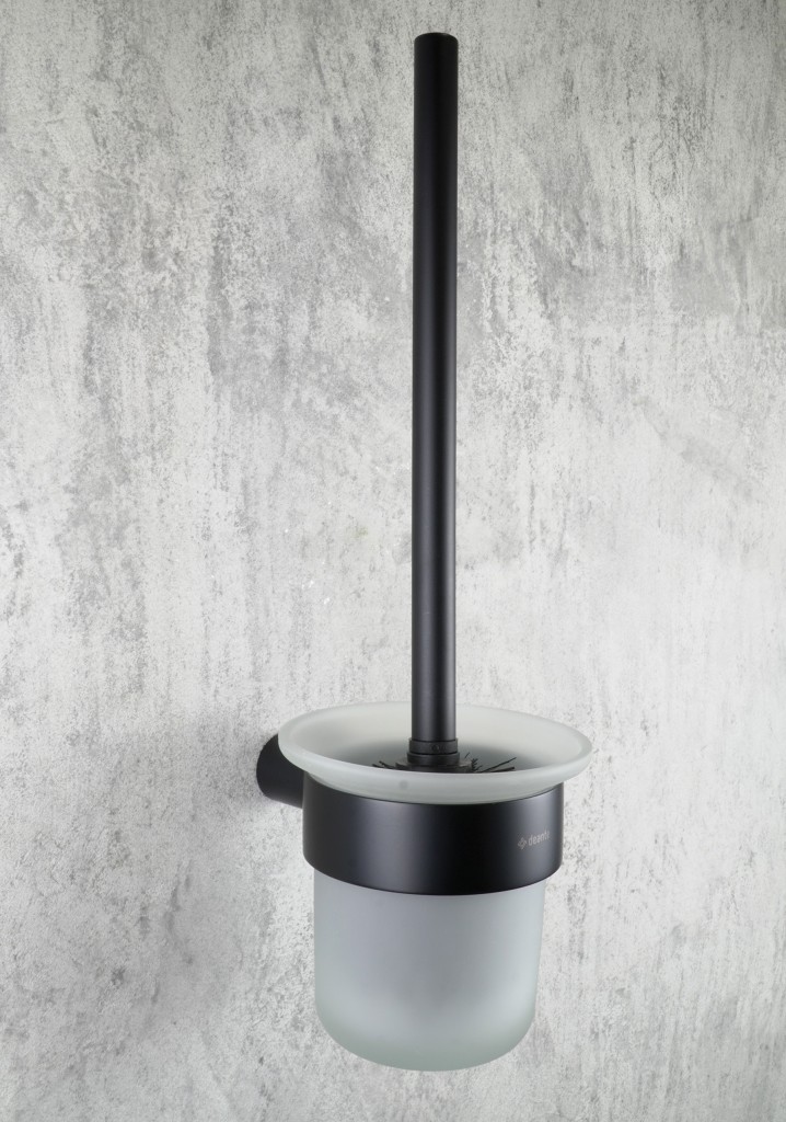 WC kefa s nádobkou z mliečneho skla pochádza zo série Round. Kefa je určená na montáž na stenu a je vyrobená z mosadze a nerezovej ocele.