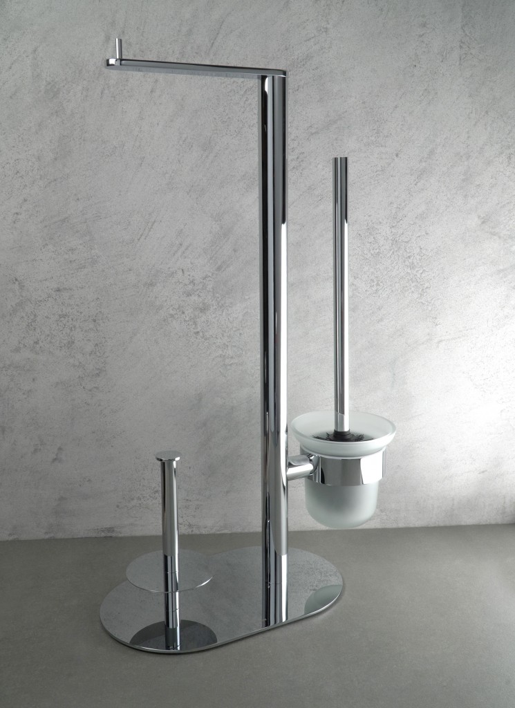 Stojan na toaletný papier je nevyhnutným prvkom vybavenia toalety alebo kúpeľne. Je vyrobený z mosadze a nerezovej ocele, čo zaisťuje jeho pevnú a odolnú konštrukciu. Vďaka klasickým líniám a minimalistickému charakteru sa perfektne hodí do moderných a minimalistických interiérov. Stojan má aj zásobník na toaletnú štetku.