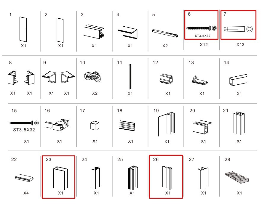 Balenie obsahuje hliníkovú lištu, tesnenie a montážnu sadu pre jednoduchú inštaláciu.
