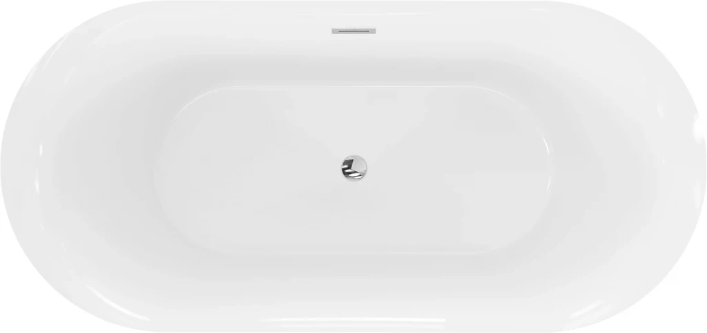 Voľne stojaca oválna akrylátová vaňa série ROXY od výrobcu MEXEN s prepadom a umiestnenom odpade na strede vane.