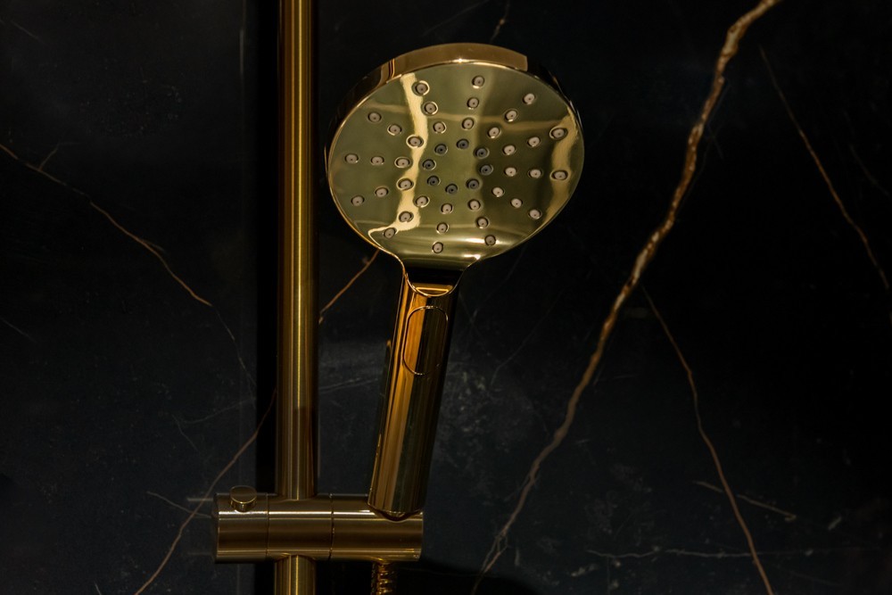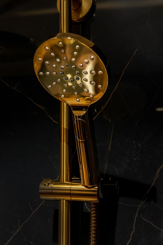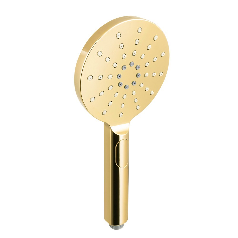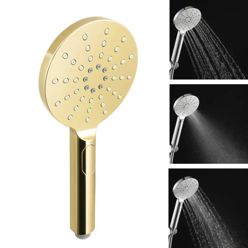 Sprchová ružica trojpolohová sa vyznačuje moderným dizajnom a vysokou kvalitou masívneho plastu, v obľúbenej zlatej lesklej farbe . Jemné línie obohacujú dizajnovo tvarované trysky. Ručná sprcha je osadená STOP tlačidlom , vďaka ktorému môžete šetriť vodu . S variabilitou, ktorú ponúka, umožňuje ľubovoľnú kombináciu so štandardným príslušenstvom vodovodných batérií. Nechajte sa rozmaznávať tromi druhmi prúdu.