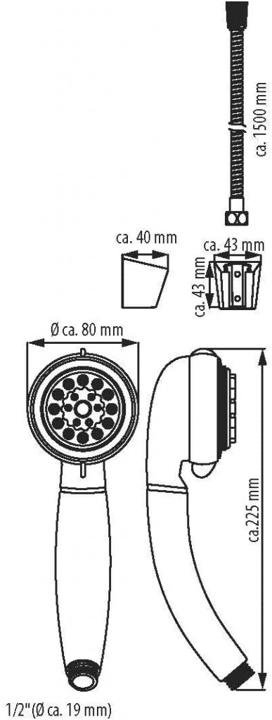 - Štandardné pripojenie ½″ (Ø cca 1,9 cm)