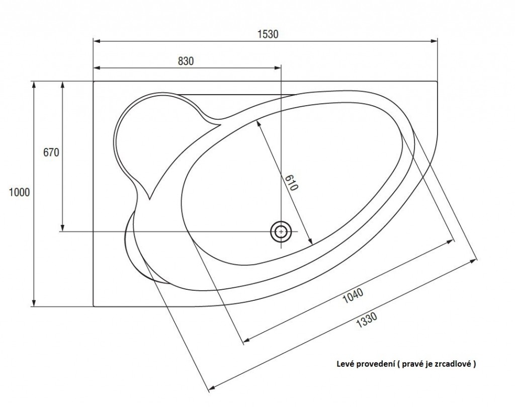 Asymetrická akrylátová vaňa Kaliope ľavá je dodávaná vrátane nastaviteľných nožičiek.