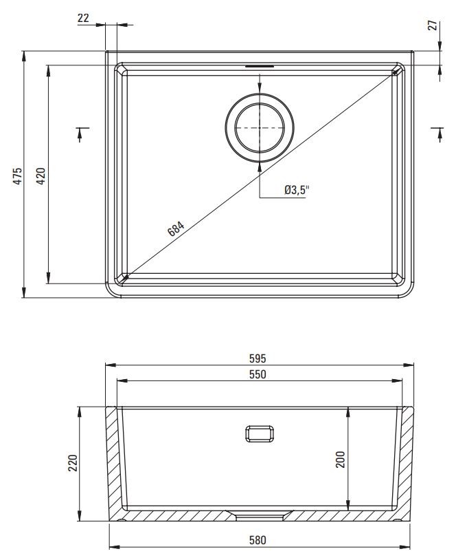 POZOR! Špeciálny spôsob montáže - modulárny, umiestnený. Podrobnosti v návode. Pripravte otvor nad skrinkou podľa rozmerov drezu. Perfektná nad 60 cm skrinku.