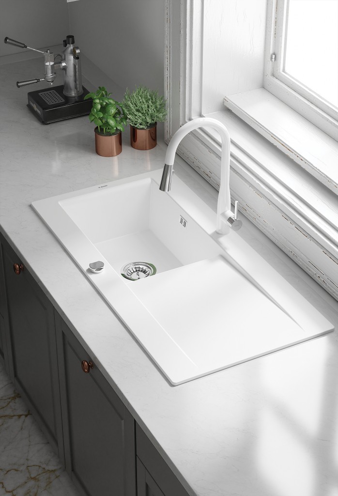 Jednomiskový drez s odkvapkávačom série Sabor je vyrobený je vyrobený z kvalitnej keramiky. Vďaka tomu odoláva vysokým teplotám a ich rýchlym zmenám. Navyše časom nestráca farbu a tlmená elegantná farba sa skvele hodí k ostatným prvkom výbavy. Odkvapkávač slúži na odkladanie umytého riadu alebo zeleniny, profilovaný povrch účinne odvádza stekajúcu vodu. Súprava obsahuje priestorovo úsporný sifón Space-Saver , ktorý umožňuje vytvoriť v skrini ďalšie miesto pre kôš na triedenie odpadu alebo čistiace prostriedky.