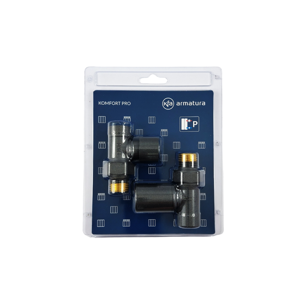 Tento radiátorový set KOMFORT PRO od KFA Armatúra je určený na pripojenie a reguláciu radiátorov k vykurovaciemu systému (napr. ústrednému vykurovaniu). Súprava sa skladá z ventilov a príslušenstva, ktoré umožňuje ovládanie tepla v miestnosti pomocou radiátora.