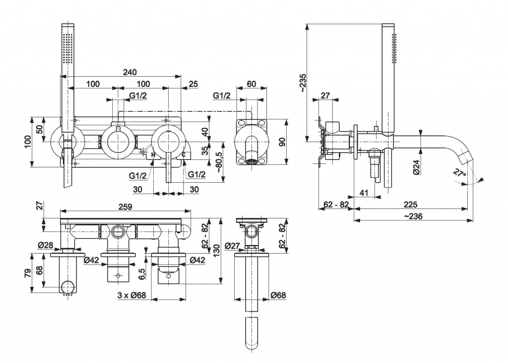 | Počet striekaní s rukoväťou sprchy | 1 |
