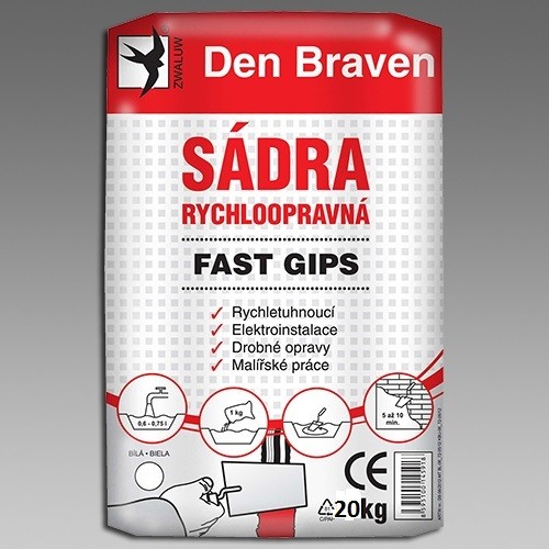 Rychletuhnoucí sádra k ručnímu zpracování na drobné opravy a elektroinstalace. Vyhovuje normě EN 13279-1.