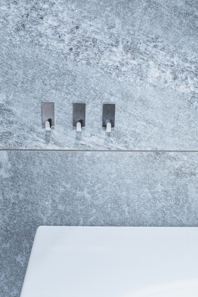 Vešiak obdĺžnikového tvaru, vyrobený z nerezovej ocele, ktorý sa inštaluje na stenu samolepiacou páskou. V balení je 6 ks kusov.