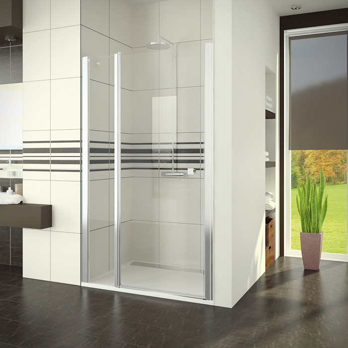 SanSwiss SWING-LINE Jednokřídlé dveře s pevnou stěnou v rovině, 12001950, rám 01 - matný elox sklo 30 - mastercarré SL1312000130
