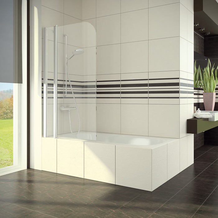 SanSwiss SWING-LINE Jednokřídlá vanová zástěna s pevnou stěnou v rovině, vlevo, 10001500, rám 04 - bílá sklo 30 - mastercarré SLB13G1000430