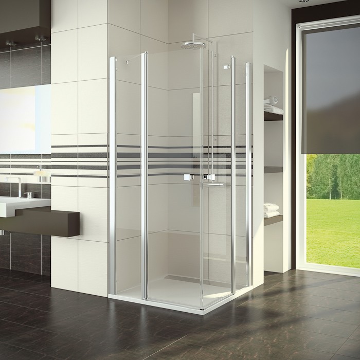 SanSwiss SWING-LINE Rohový vstup dvoudílný s křídlovými dveřmi, levý, 8001950, rám 01 - matný elox sklo 30 - mastercarré SLE2G08000130