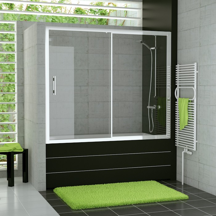 SanSwiss TOP-LINE Vaňové posuvné dvere s pevnou stenou v rovine, 16001500, rám 04 - biela sklo 30 - Mastercarré TOPB216000430
