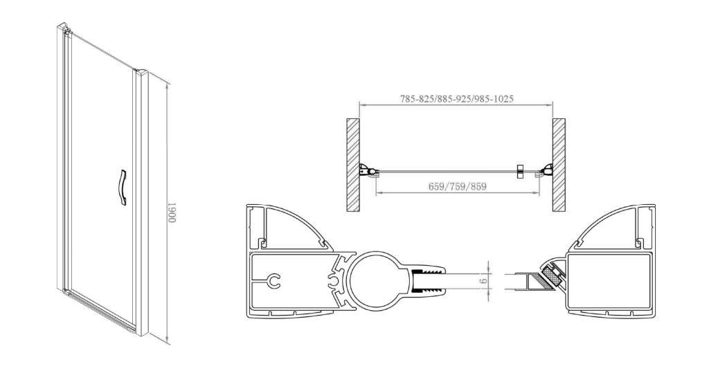 - Na mieru je možné vyrobiť aj pevné časti štvrťkruhového sprchovacieho kúta tak, aby vznikol atypický štvrťkruh s rozmerom 1000x800 alebo 1200x900 mm