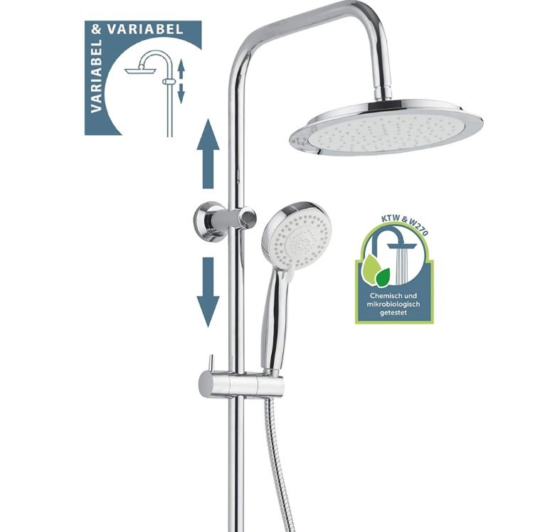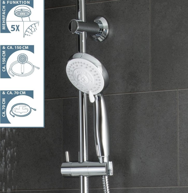 Ideálnou voľbou pri rekonštrukcii alebo výmene sprchového stĺpu je sprchový stĺp Aquastar 60500, ktorý má výškovo nastaviteľný nástenný držiak. Na montáž jednoducho použijete existujúce otvory v stene.