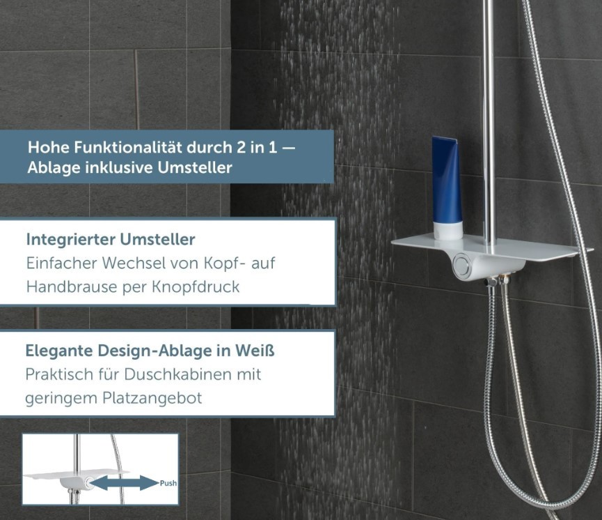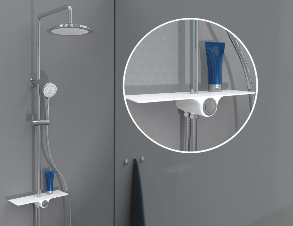- integrovaný prepínač v polici pre ľahké prepínanie medzi hornou a ručnou sprchou