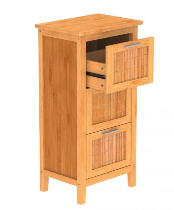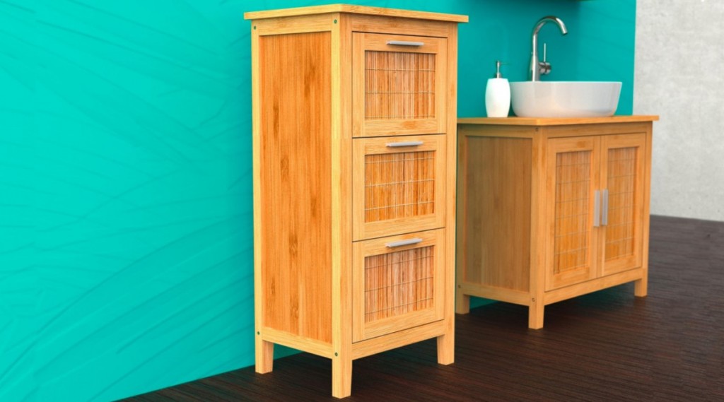 Skrinka je vyrobená z vysoko kvalitného bambusového dreva. Vyznačuje sa dlhou životnosťou a odolnosťou proti vlhkosti. Bambusový materiál je vysoko odolný, obzvlášť v náročnom prostredí kúpeľní.