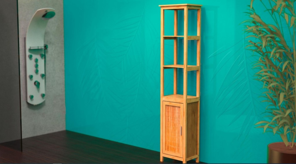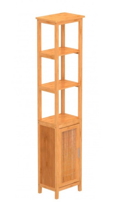 Vysoká skrinka je vyrobená z vysoko kvalitného bambusového dreva. Vyznačuje sa dlhou životnosťou a odolnosťou proti vlhkosti. Bambusový materiál je vysoko odolný, obzvlášť v náročnom prostredí kúpeľní.