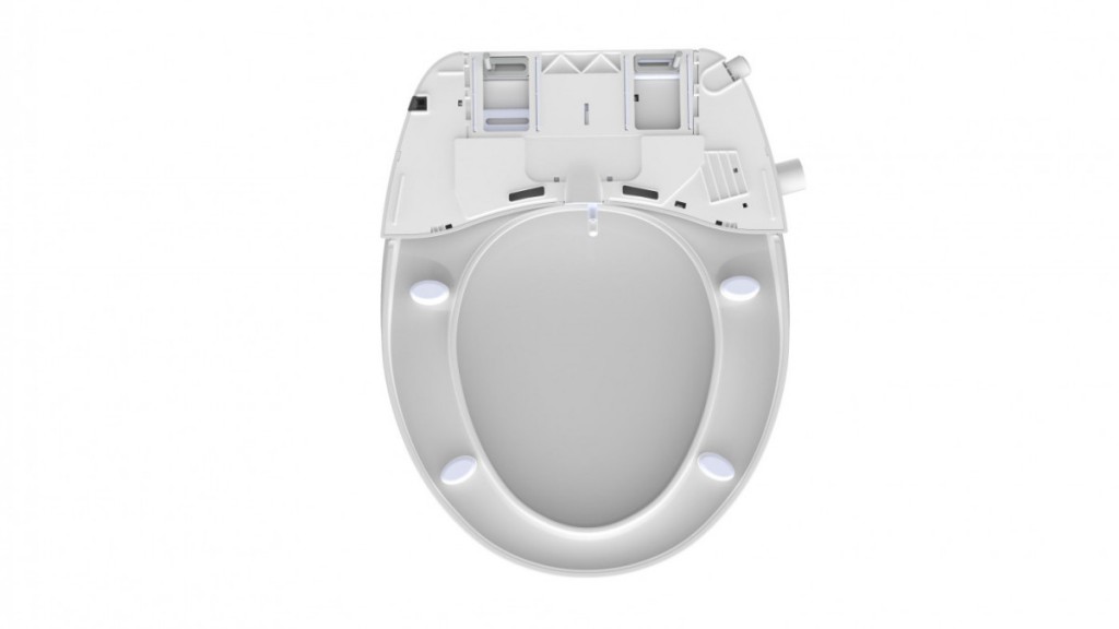 Bidet so sprškou / tryskou: jedná sa o valček cca 7 cm, ktorý sa vysúva len pomocou ovládania na sedátku. Prúd vody je taktiež nastaviteľný. Po použití opäť zájde. Dve samostatné trysky pre dámsky a análny oplach. WC sedátko teda na prvý pohľad vyzerá ako každé iné – ale skrýva v sebe funkciu navyše.