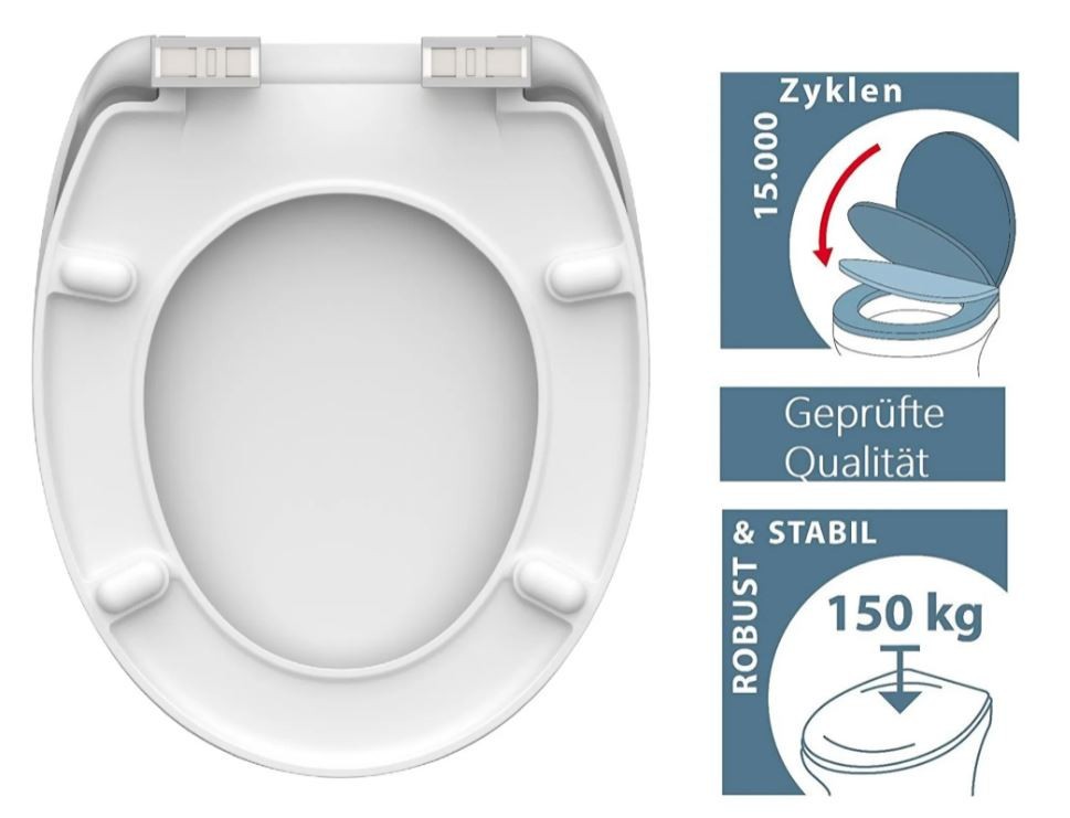 Záchodová doska je vyrobená z kompozitného materiálu Duroplast. Výnimočná pevnosť a odolnosť je zaistená vďaka kombinácii termostatického plastu s vláknami.