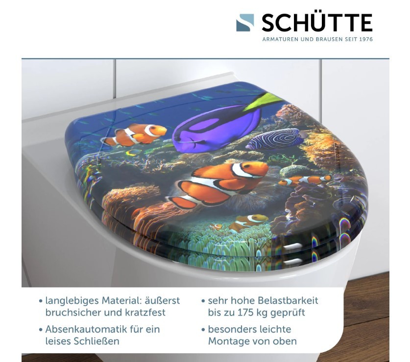 Záchodová doska pre všetky WC misy štandardných rozmerov. Quick release - ľahko odmontovateľné. Fotopotlač vo vysokom rozlíšení zaliata v akryle pre čo najrealistickejší efekt Vďaka systému SOFT-CLOSE sa záchodová doska spúšťa nehlučne dole