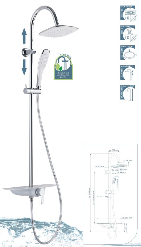 Elegantný závesný sprchový set Schütte Waterway v špičkovej kvalite ponúka dokonalý zážitok zo sprchovania. Extra veľká sprchová hlavica vás zahalí do vodného sna.