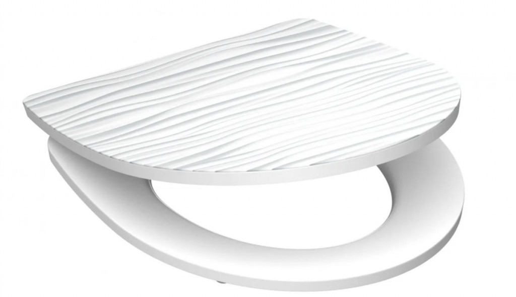 - Duroplast WC sedátko WHITE WAVE s vysokým leskom, s mechanizmom soft-close a rýchlym uvoľnením