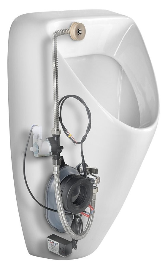 Urinál s integrovaným senzorovým splachovačem splňuje požadavky anti vandal a je určen všude tam, kde je požadován uživatelský komfort při maximální úspoře vody.