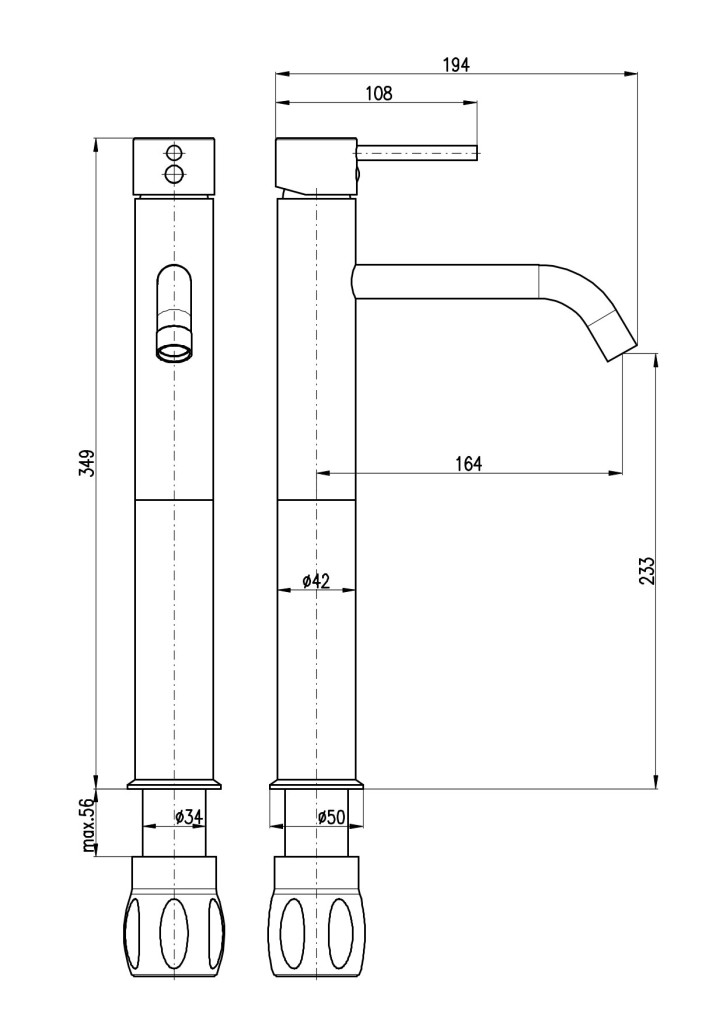 Vodovodná batéria umývadlová stojanková, vysoká pre umývadlá na dosku.